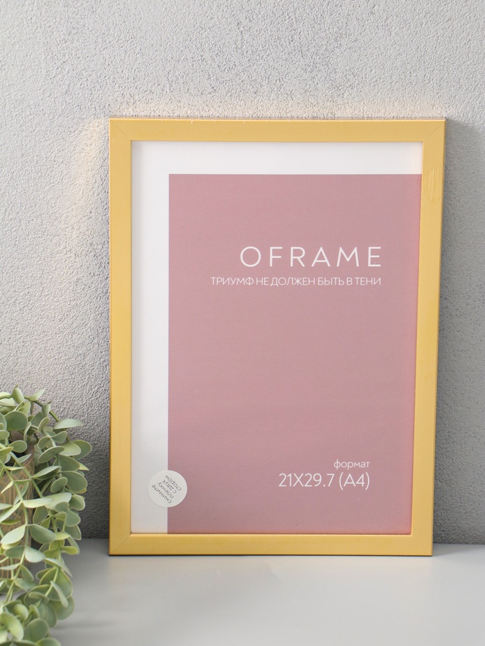Фоторамка для фото 21х29,7 см (А4) "Oframe", пластик, золото, (пластик экран)