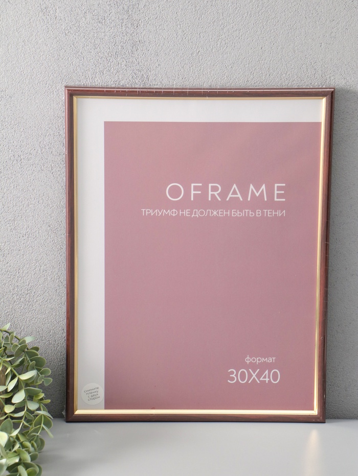 Фоторамка для фото 30х40 см "Oframe", пластик, бук с золотом, (пластиковый экран)