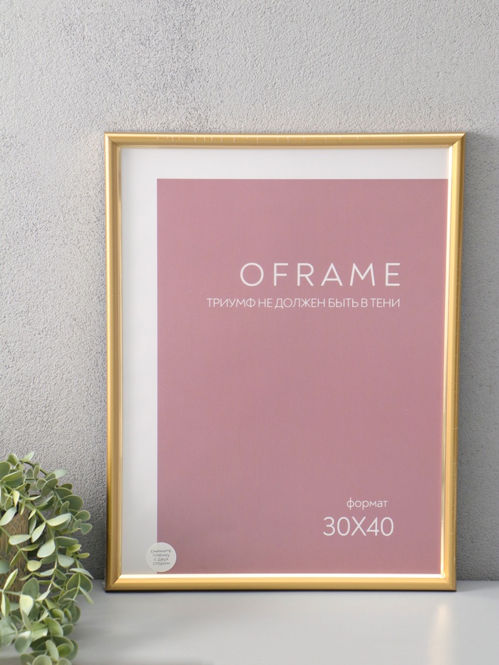 Фоторамка для фото 30х40 см "Oframe", пластик, золотой, (пластиковый экран)