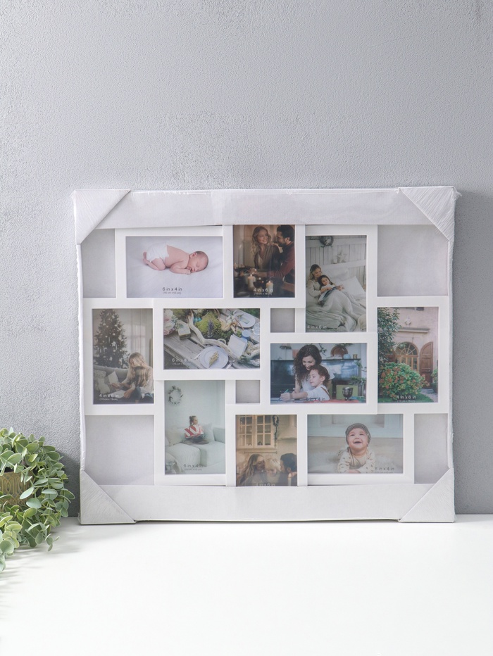 Фоторамка - коллаж на 10 фото 10×15 см «Пассаж», пластик, белая, 55×48.5 см