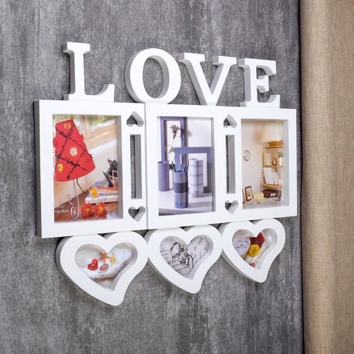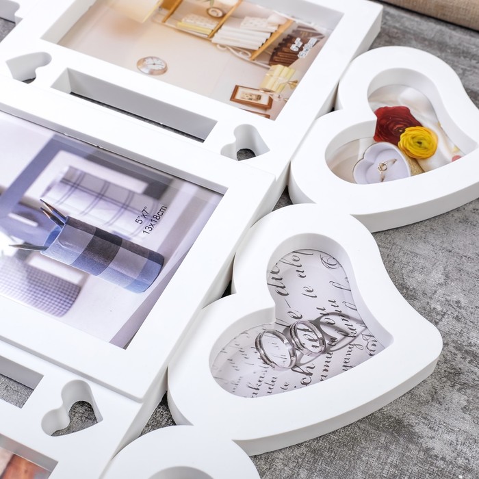 Фоторамка - коллаж на 6 фото 9×13 см, 13×18 см «Влюбленность», пластик, белая, 41×51 см