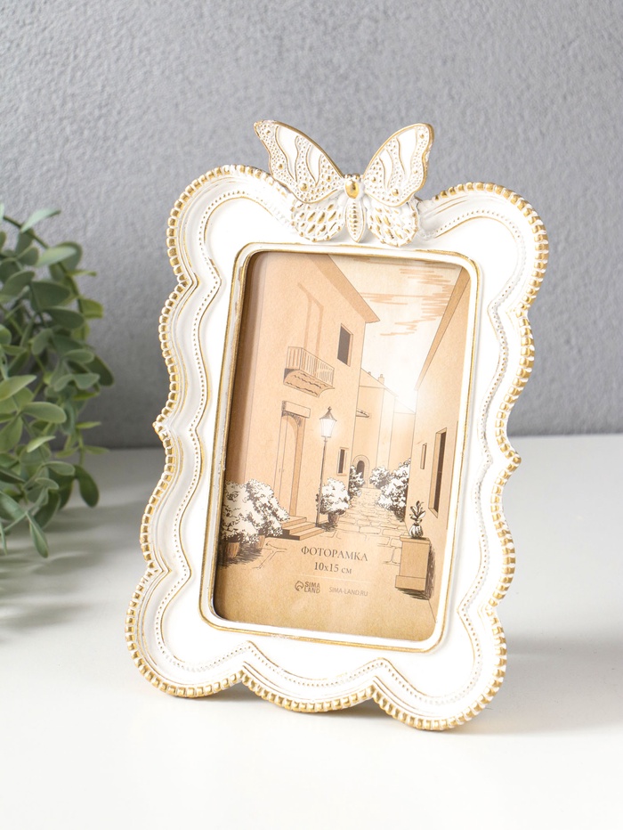 Фоторамка полистоун 10х15 см "Большая бабочка" белая с золотом 15,5х3,5х22 см