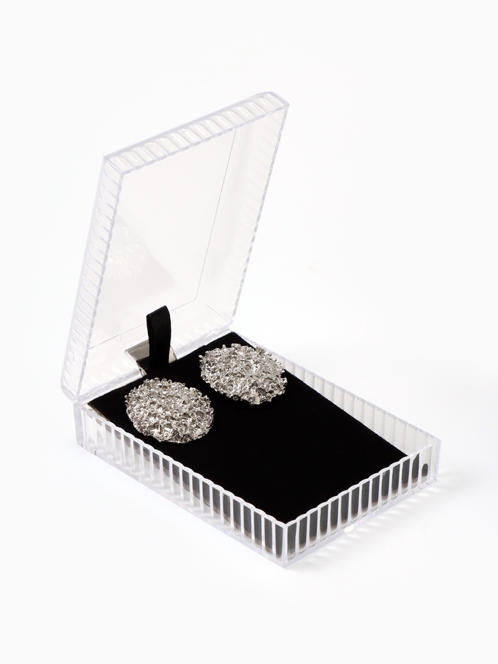 Внутри футляра предусмотрена мягкая подкладка, которая аккуратно фиксирует украшения, предотвращая их повреждения и царапины. Прочный пластиковый материал обеспечивает долговечность и надежность футляра, сохраняя его презентабельный вид на протяжении долгого времени. Компактные размеры футляра позволяют удобно разместить украшения, делая упаковку не только функциональной, но и эстетичной.