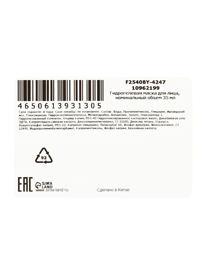 Гидрогелевая маска антивозрастная, 35 мл