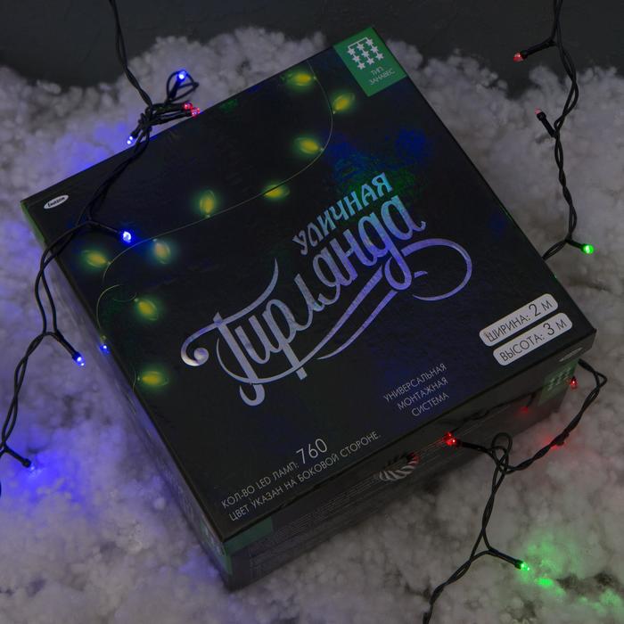 Гирлянда "Занавес" 2 х 3 м , IP44, УМС, тёмная нить, 760 LED, свечение RG/RB, мигание, 220 В