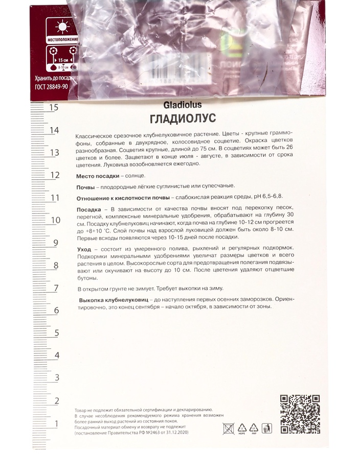 Гладиолус крупноцветковый «смесь окрасок», луковица цветов в пакете с перфорацией, р-р 10/12, 10 шт.