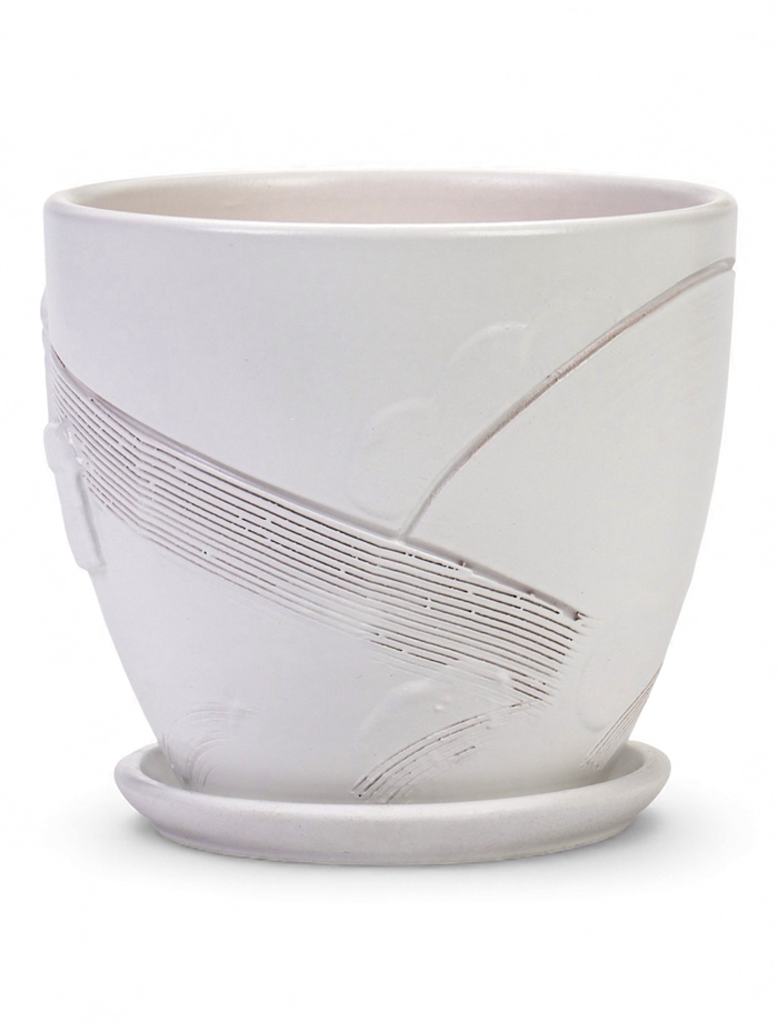 Горшок цветочный с поддоном 1,4 л, d15/h13 см белый керамика, "Голландия" (М)