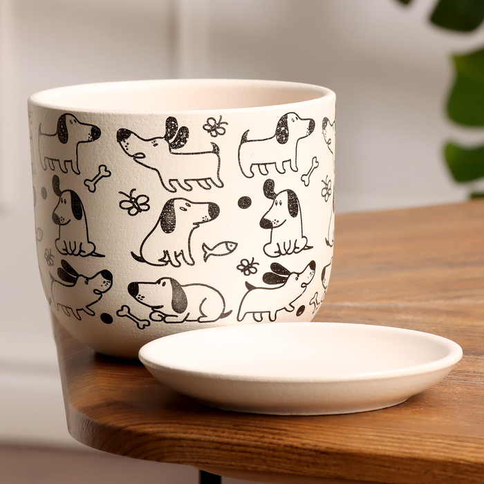 Горшок цветочный Собаки белый бук №2, 1,6 л, d - 15 см