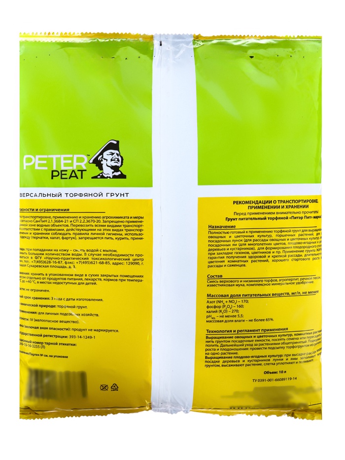 Назначение: полностью готовый к применению торфяной грунт для выращивания всех видов овощных, цветочных культур, плодовых деревьев и ягодных кустарников. Для заполнения посадочных ям и лунок, для формирования плодородного слоя в теплицах при закладке газонов, цветников и пр. Гарантирует активный рост и высокий урожай, обеспечивает развитие корневой системы, стимулирует все вегетативные процессы.