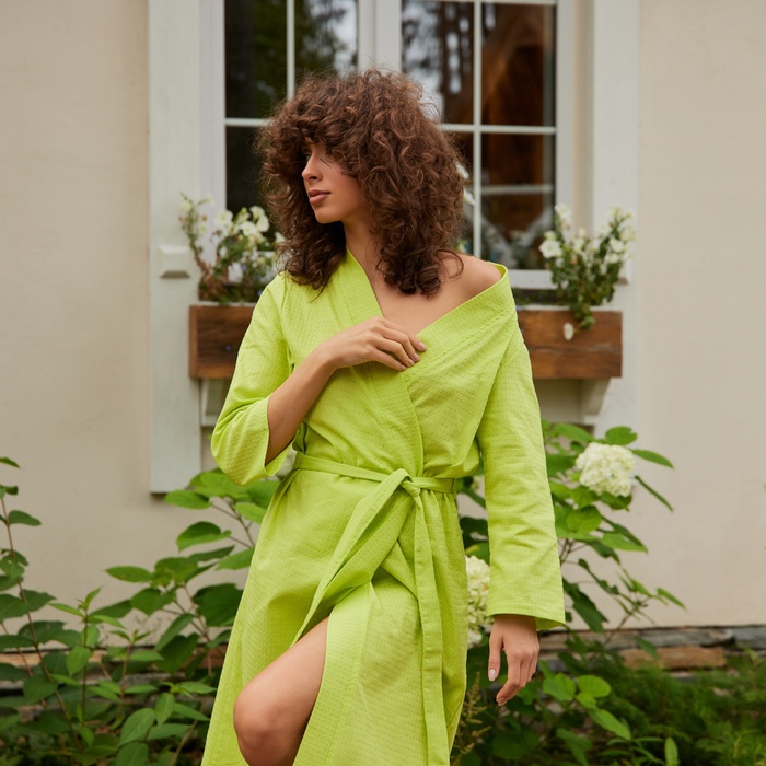 Халат вафельный женский удлинённый Экономь и Я размер 42-44, цвет салатовый, 100% хлопок, 200 г/м²