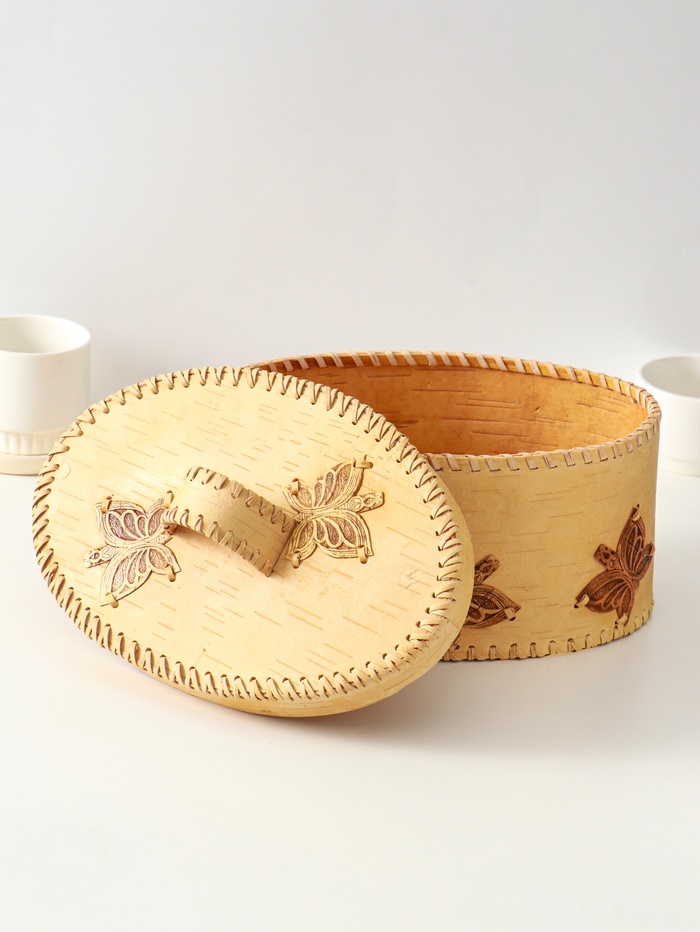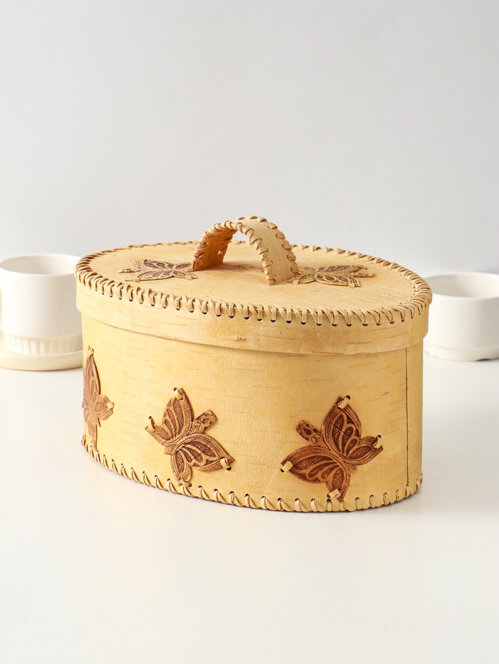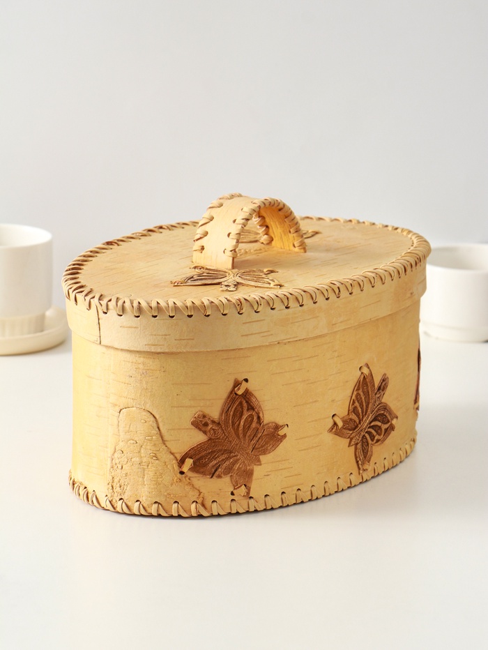 Хлебница с ручкой "Бабочки", 30х18х19 см, береста