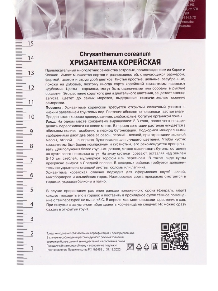 Хризантема корейская Оранжевая игольчатая, I р-р, 1 шт. Весна 2026