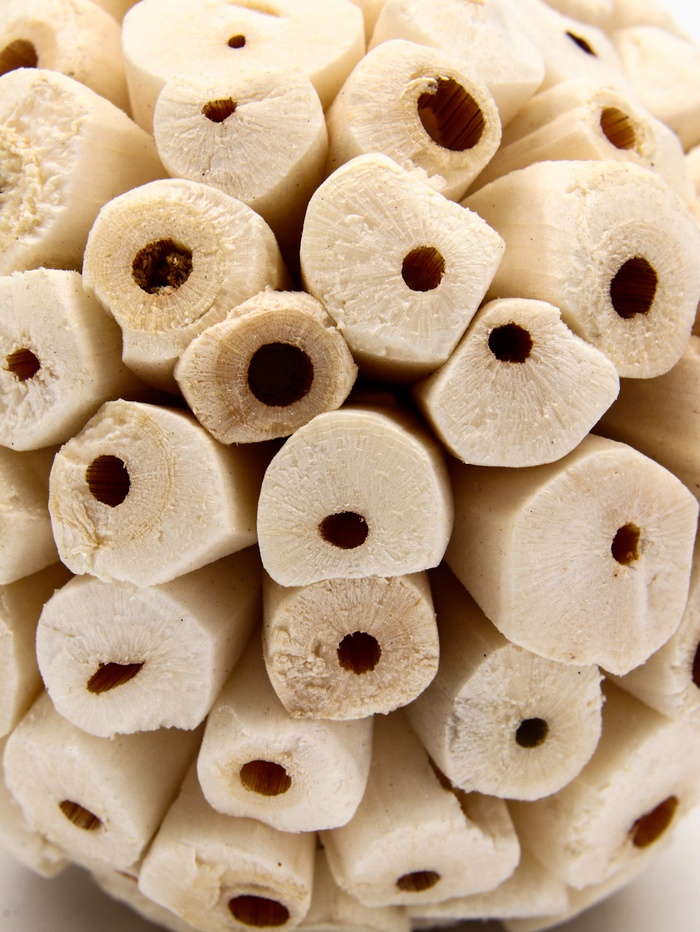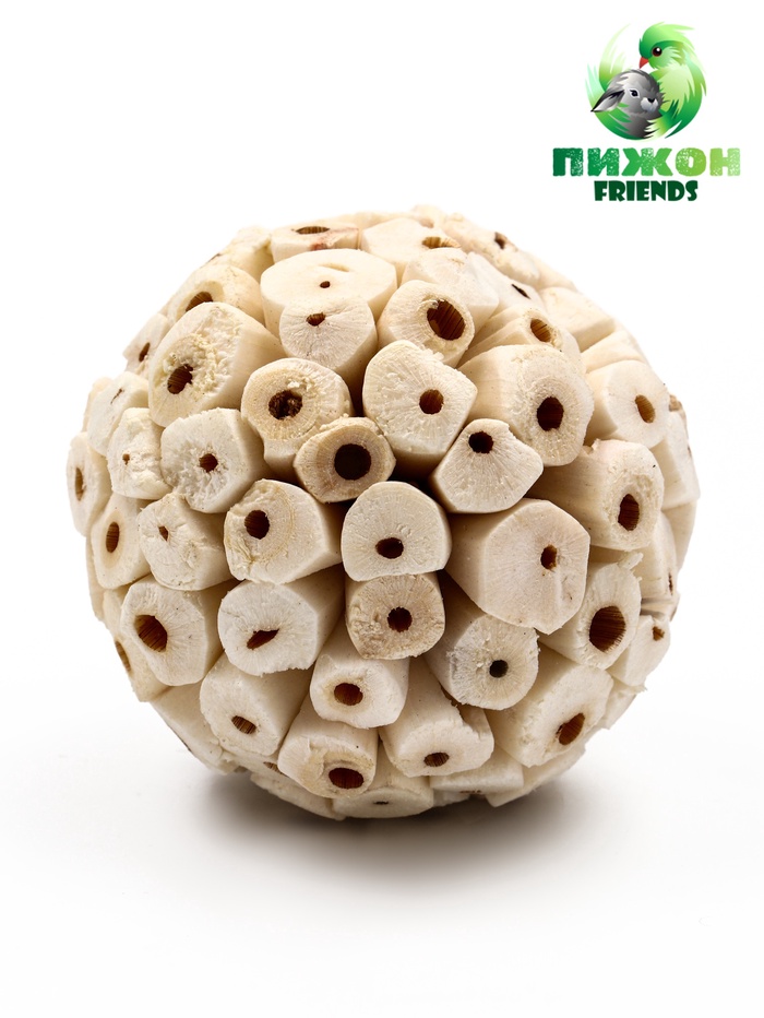 Деревянная игрушка диаметром 5 см — это простой, но важный элемент в жизни птиц. Изготовлена из натурального дерева сола - водно-болотного растения, известное своей очень мягкой, легкой, пробковой сердцевиной молочно-белого цвета.