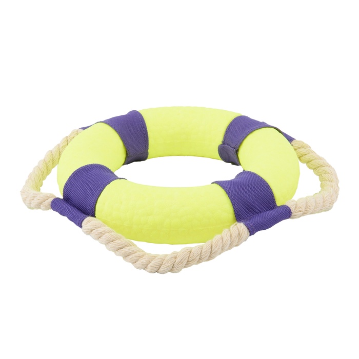 - Яркий неоново-жёлтый цвет: контрастный оттенок виден в любых условиях — в тени парка, на траве или в сумерках. Владельцу проще отслеживать игрушку во время активных игр, а собаке — фокусироваться на цели.