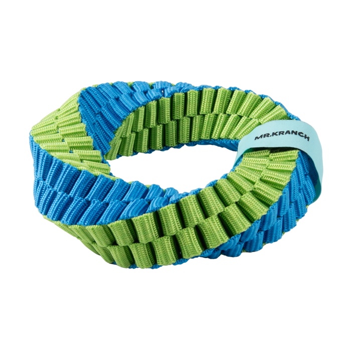- Спиральная форма — для захвата и вращения: закрутка создаёт естественную точку удержания — собака легко берёт кольцо в пасть, не соскальзывая. При броске или подбрасывании оно вращается, что привлекает внимание и провоцирует прыжок или рывок вперёд.