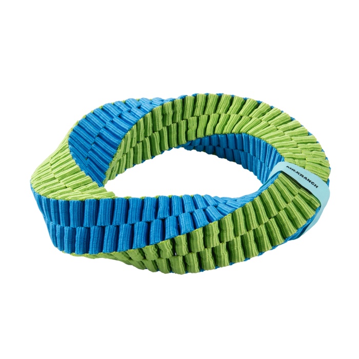- Спиральная форма — для захвата и вращения: закрутка создаёт естественную точку удержания — собака легко берёт кольцо в пасть, не соскальзывая. При броске или подбрасывании оно вращается, что привлекает внимание и провоцирует прыжок или рывок вперёд.
