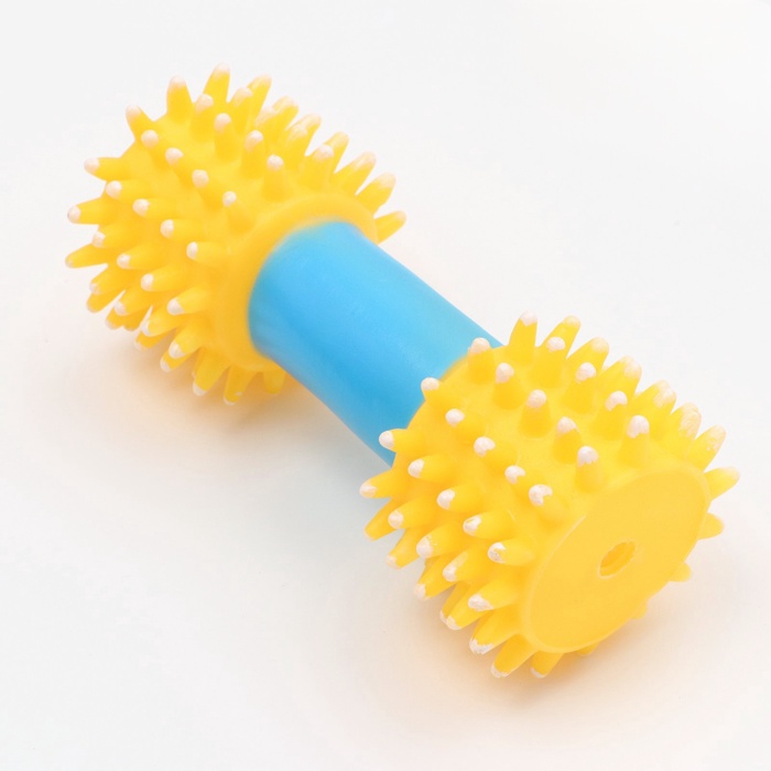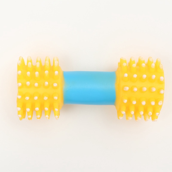 Игрушка для собак пищащая «Массажная гантель», 14 см, жёлтая/голубая