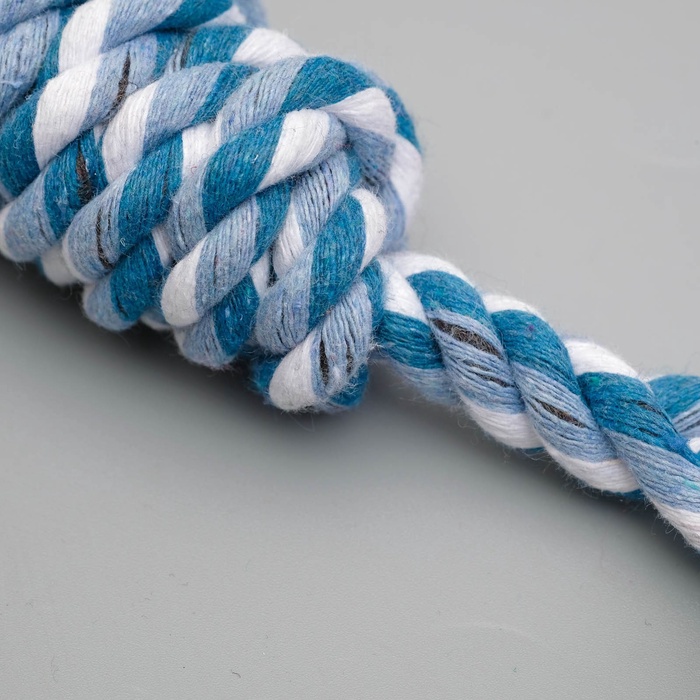 - Натуральный материал: Игрушка изготовлена из хлопкового каната. Волокна массируют дёсны и мягко очищают зубы от налёта во время игры.