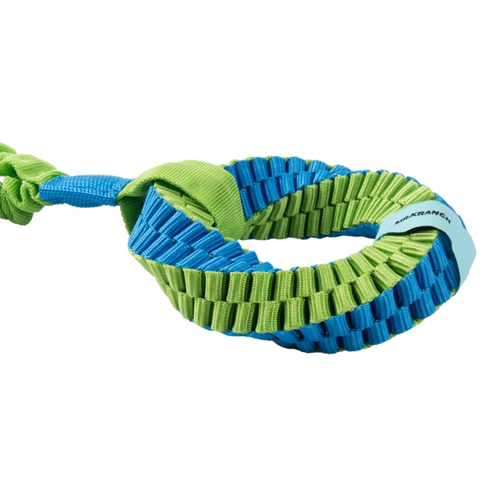 Спиральное кольцо на резинке — это перетяжка нового формата: плетёное кольцо, соединённое с ручкой эластичной вставкой. Резинка добавляет динамику и плавность, превращая рывки в контролируемую игру, где нагрузка распределяется равномерно — и для собаки, и для человека.