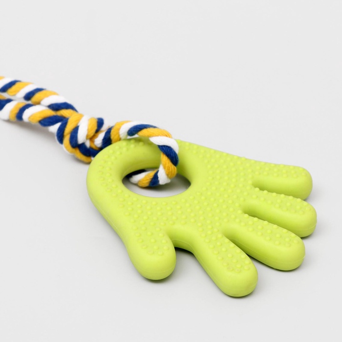 - Двойная польза для питомца: Пёс может грызть упругую «ладошку» из термопластичной резины, что способствует очистке зубов, или трепать прочный канат из текстиля, удовлетворяя жевательный инстинкт. Одна игрушка заменяет две.