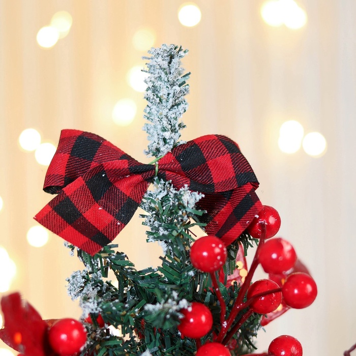 - Тип — настольная ёлка, компактно размещается даже на узком подоконнике или рабочем столе.