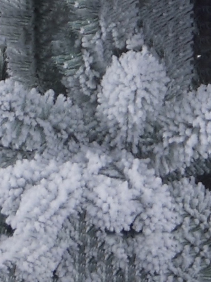 - Белая хвоя с эффектом снега подчёркивает зимнюю тематику и подходит для разных стилей интерьера.