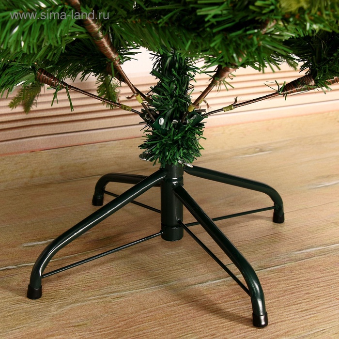 - Материал — металл, пластик и ПВХ, обеспечивающие устойчивость конструкции, долговечность и мягкость хвои на ощупь.