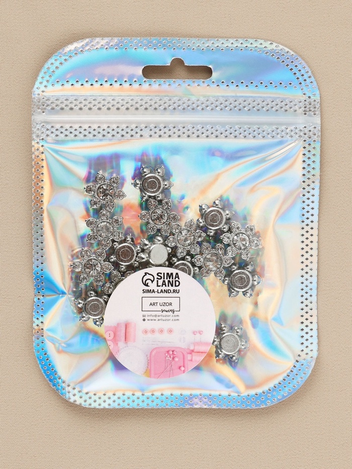 Добавьте блеска вашим творениям! Кабошоны «Цветок» со стразами станут идеальным выбором для создания элегантных украшений и аксессуаров. Эти элементы размером 12.3 мм подойдут как для начинающих мастеров, так и для профессионалов в рукоделии. Благодаря их серебристому отливу и стильному дизайну каждое изделие обретёт изысканный вид.