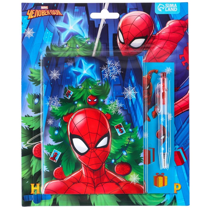 Канцелярский набор «С новым годом», блокнот А6, ручка, наклейки, «Человек-паук»