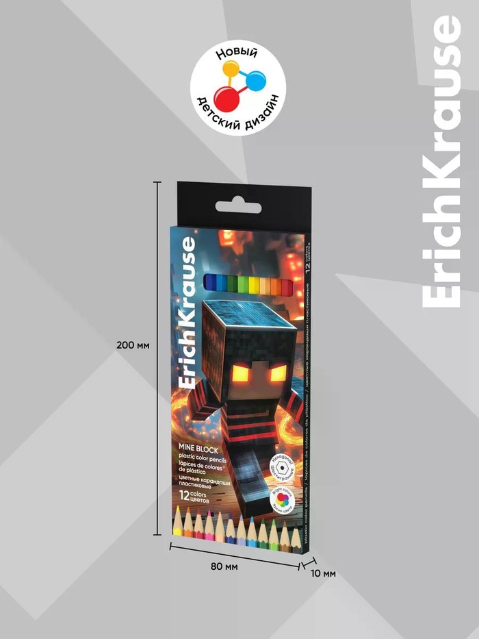 Карандаши 12цв, ErichKrause "Mine Block", пластик, шестигр., европодвес