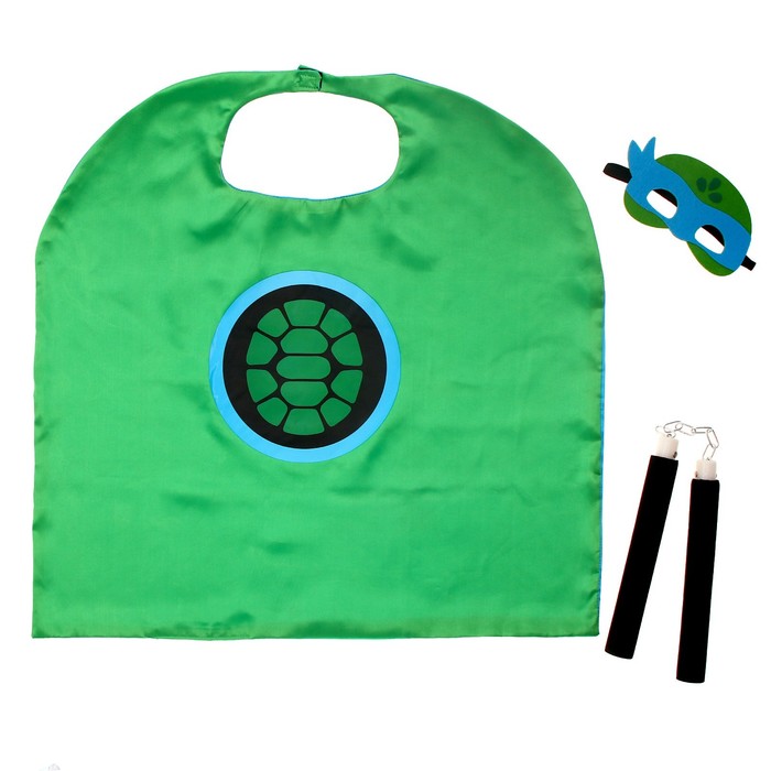 Карнавальный набор «Боевая черепашка» — это идеальный выбор для маленьких любителей приключений. В комплект входят три предмета: маска, плащ и нунчаки. Этот набор позволит вашему ребенку почувствовать себя настоящим супергероем!