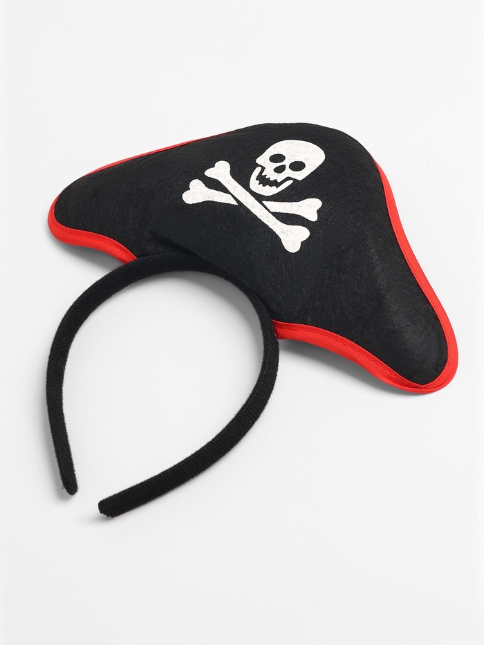 Карнавальный ободок «Пиратка» — стильный аксессуар, который поможет создать яркий и запоминающийся образ для любого пиратского праздника. Ободок украшен эффектной чёрной треуголкой с контрастным красным кантом, а в центре треуголки расположено классическое изображение черепа и костей.