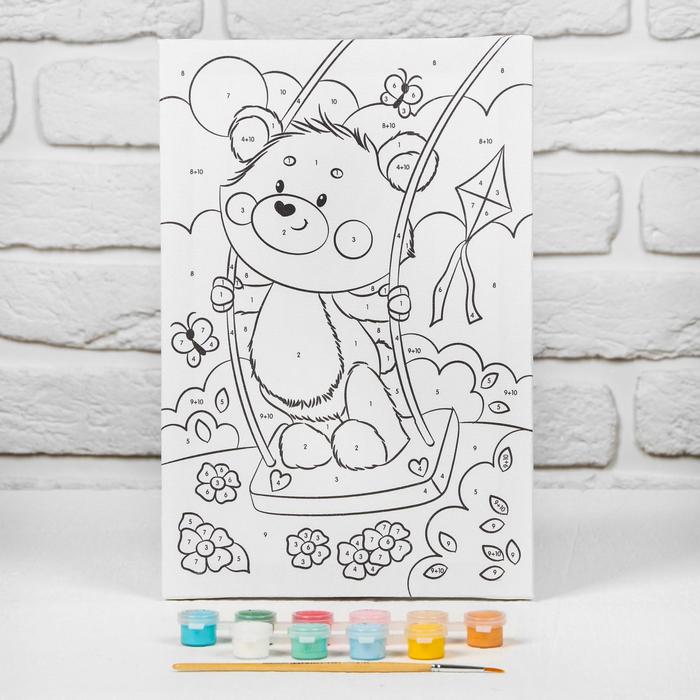 Картина по номерам для детей на подрамнике «Медвежонок на качели», 20 х 30 см понравится и детям, и взрослым.