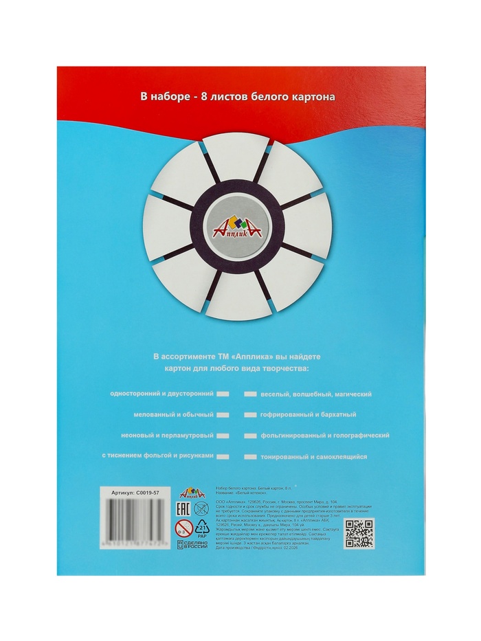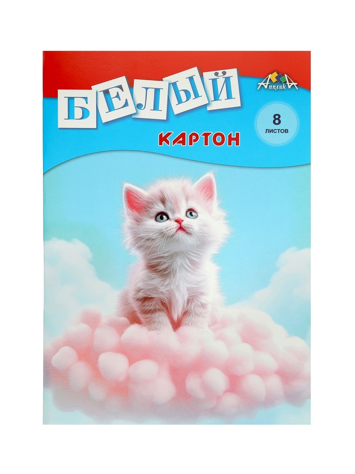Картон белый А4 8л немел одност "Белый котёнок" 220г/м², в папке