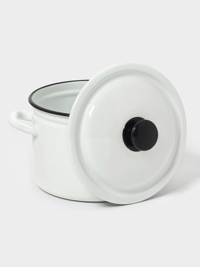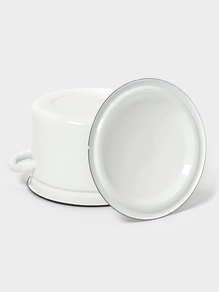 Простая форма — максимальная польза. Цилиндрическая эмалированная кастрюля 4 л с крышкой — это посуда для повседневной готовки без лишних изгибов и уступов. Белая эмаль, аккуратный рисунок и крышка из того же материала делают её удобной на плите, в холодильнике и при хранении.