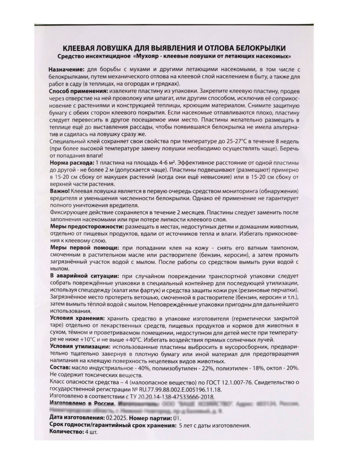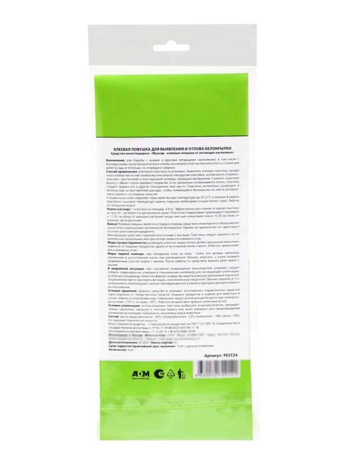 Клеевая ловушка для выявления и отлова белокрылки в теплицах, 4 шт., Nadzor Garden