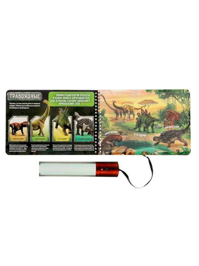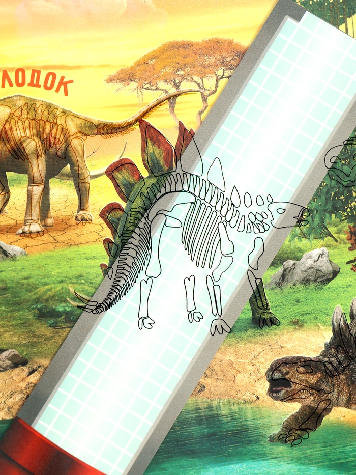 Тираннозавр рычит, трицератопс машет хвостом, а птеранодон взмывает в небо — всё это оживает, стоит провести сканером по странице! В книге «Диномир» каждый динозавр прячет секрет: звуки, факты, следы или скрытые детали. Ребёнок становится палеонтологом, исследователем и первооткрывателем — всё в одной книге.