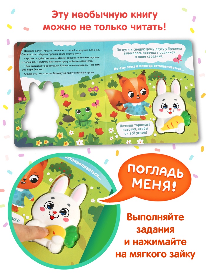 Книга со сквишем "День рождения кролика. Погладь меня!"