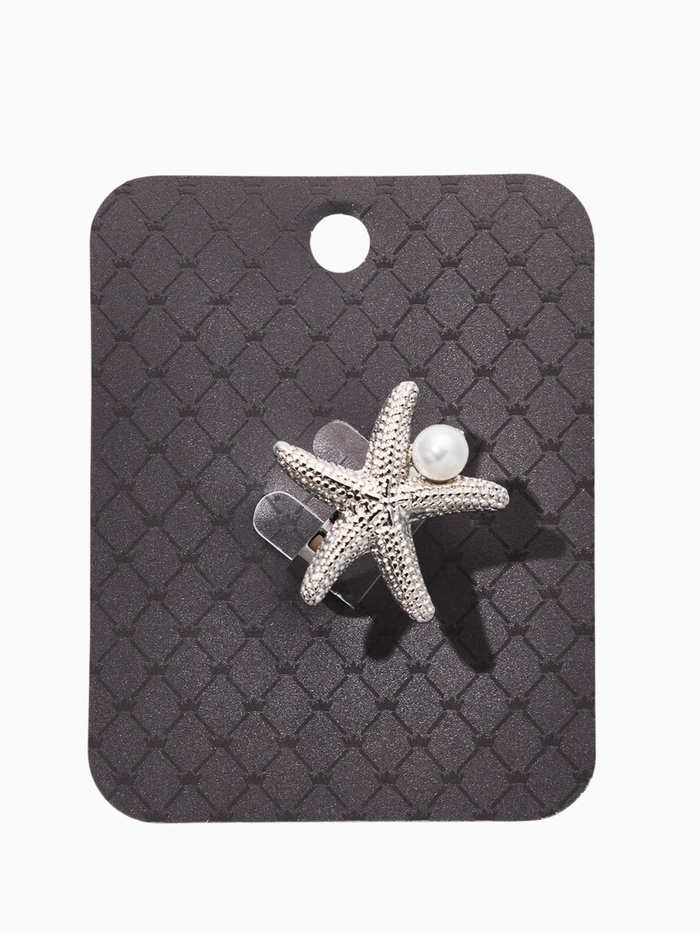 Кольцо "Морская звезда" с бусиной, безразмерное, цвет белый в серебре