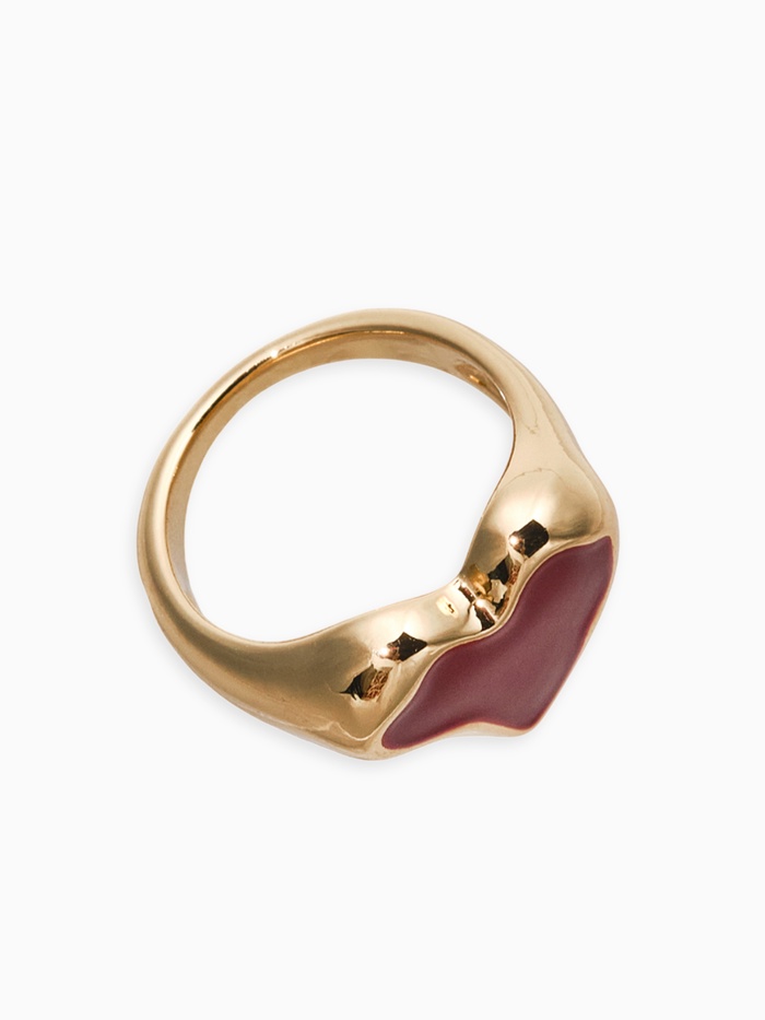 Кольцо "Сердце" корейский стиль, размер 17, цвет бордовый в золоте