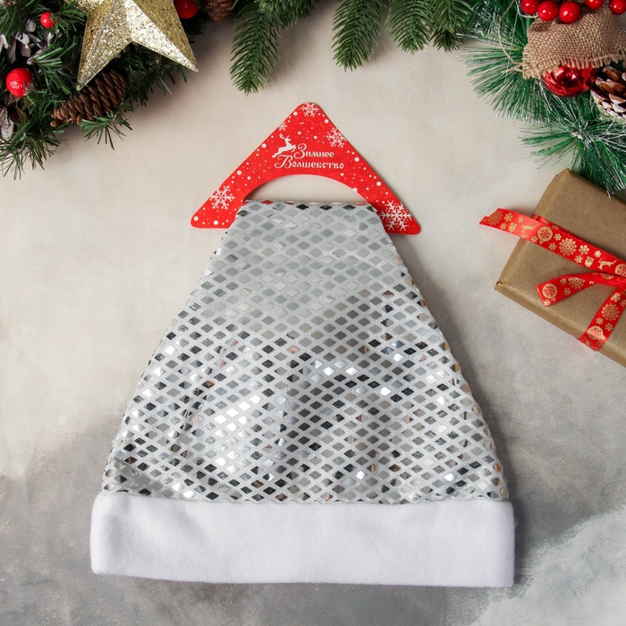 Серебристый праздничный колпак, вдохновлённый сиянием зимней ночи, станет выразительным элементом новогоднего образа. Размер 28×38 см делает его удобным для большинства пользователей, а текстильный материал обеспечивает комфорт при длительном ношении. Этот аксессуар гармонично вписывается в атмосферу зимних праздников, подчёркивая настроение торжества и создавая ощущение лёгкости и праздника.