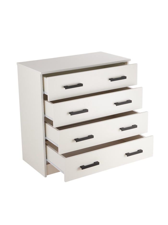 - Четыре выдвижных ящика: обеспечивают удобное хранение одежды, белья и аксессуаров с быстрым доступом.