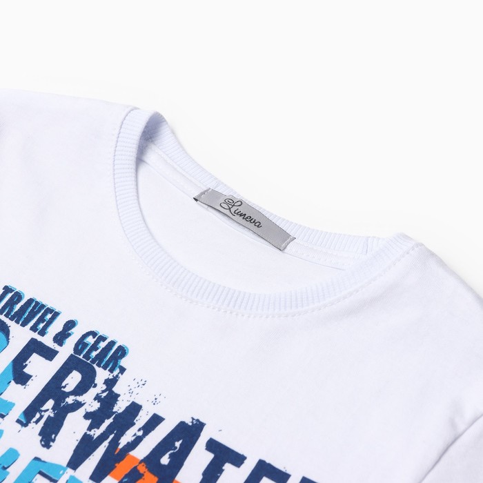 Комплект для мальчика (футболка/шорты), цвет белый/синий, рост 134 см