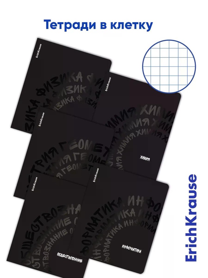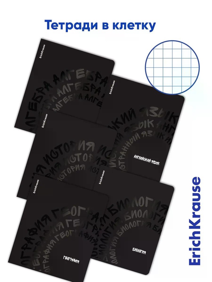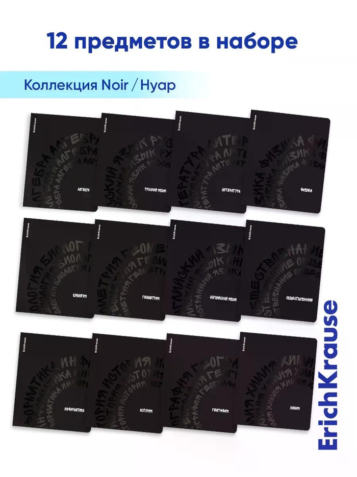 Комплект тетрадей 48 листов в клетку/линейку ErichKrause Noir, 12 штук