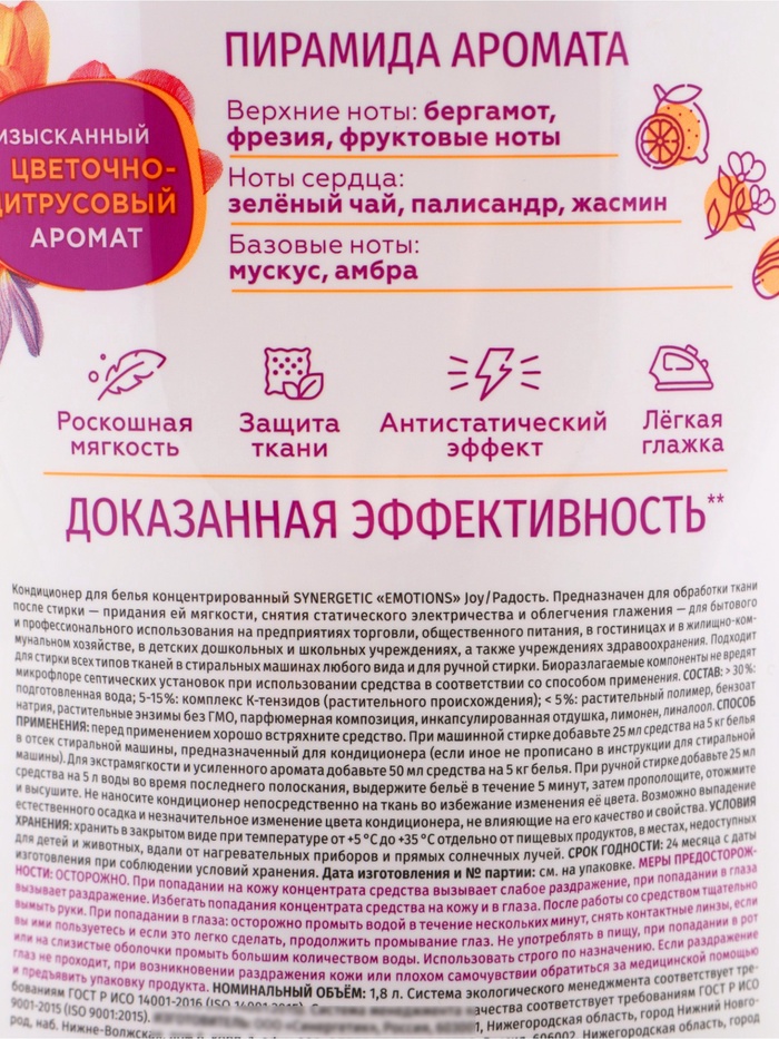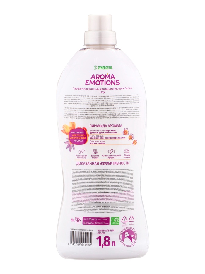 Кондиционер для белья парфюмированный SYNERGETIC фрезия, палисандр, бергамот, 1,8 л