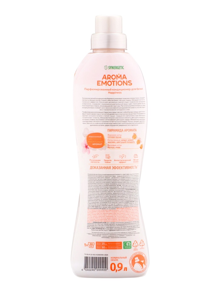 Кондиционер для белья парфюмированный SYNERGETIC миндаль, груша, жасмин, 0,9 л