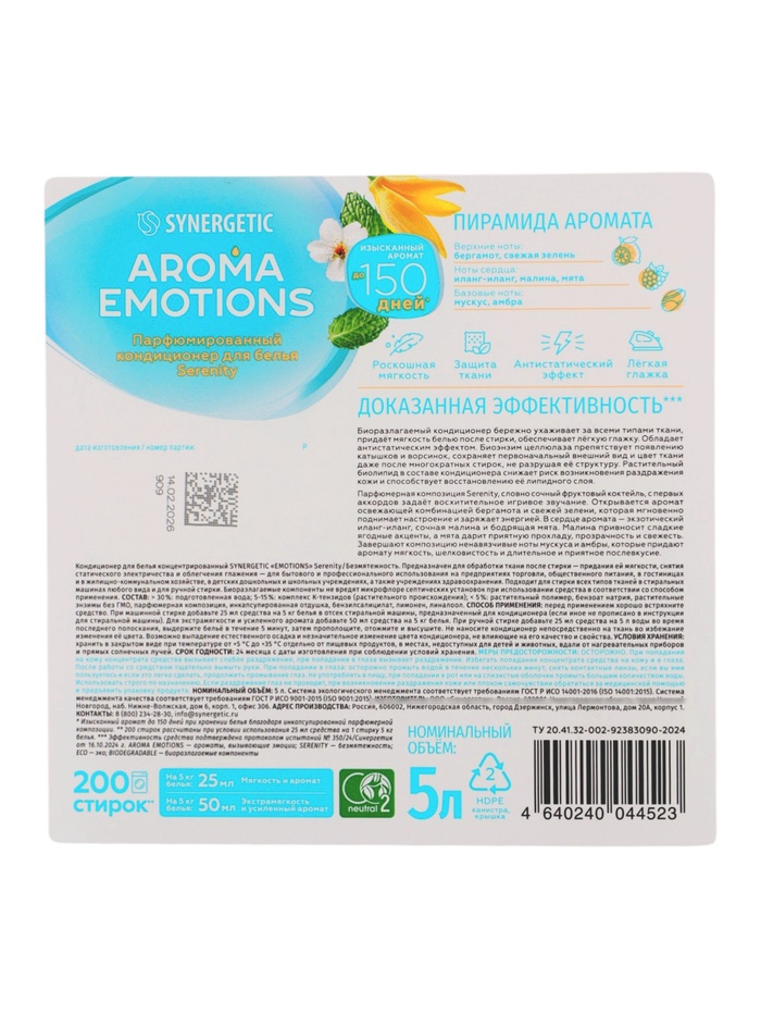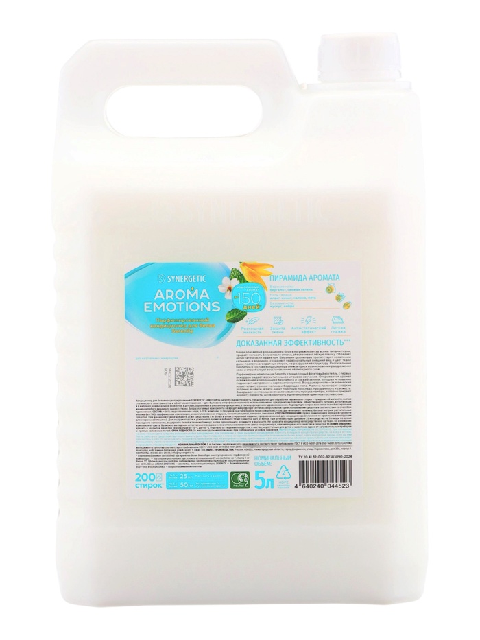 Кондиционер для белья парфюмированный SYNERGETIC мята, иланг-иланг, малина, 5 л