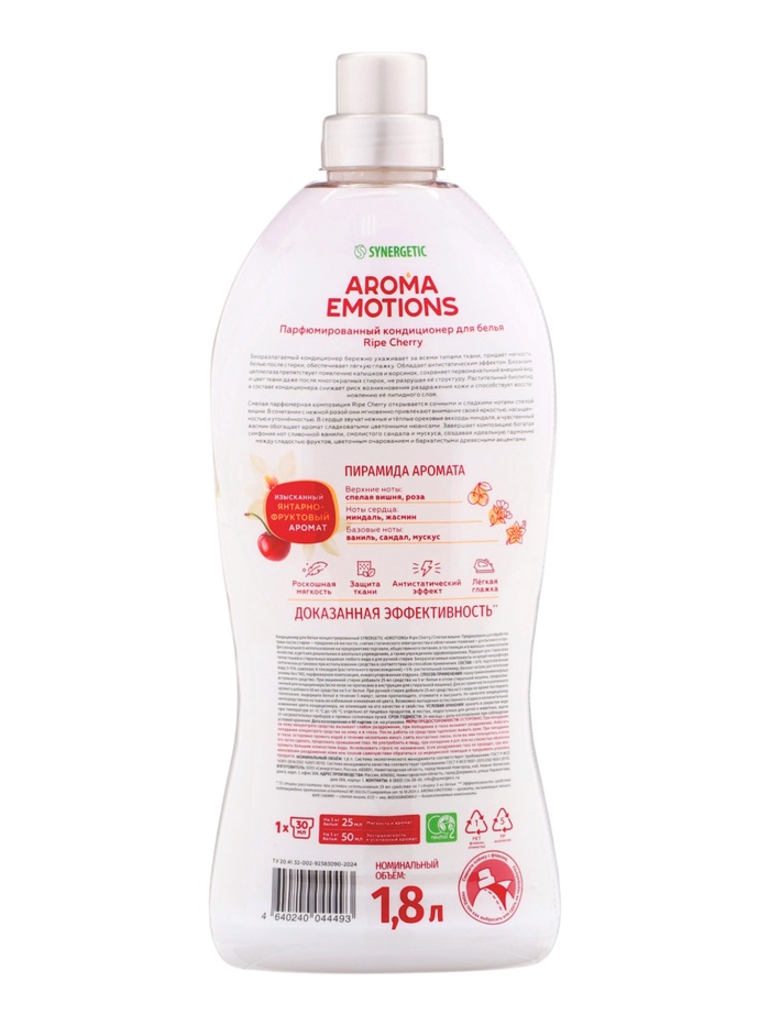 Кондиционер для белья парфюмированный SYNERGETIC вишня, сандал, ваниль, 1,8 л