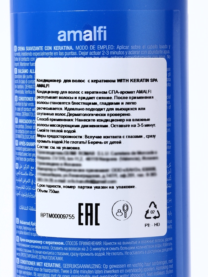 - Нанесите кондиционер AMALFI SPA на влажные волосы, распределяя по всей длине, с акцентом на кончики.