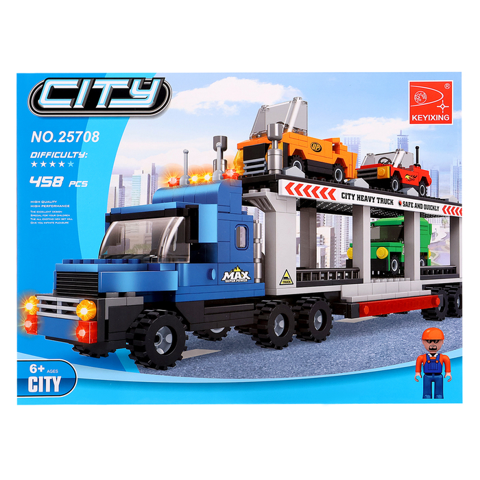 Без этих рабочих жизнь в городе станет сложнее. Изо дня в день они перевозят спецтехнику для строительства дорог и доставляют её на предприятия. Чтобы помочь им справиться с задачей, малыш соберёт мощный автовоз с двухуровневым прицепом и привезёт долгожданные машины будущим владельцам.